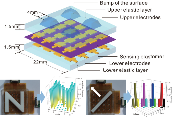 ● 基于柔性复合材料的触觉传感检测。肢残患者生活和工作能力的丧失,已成为不可回避的社会问题。由于肢体的再造一直并且在短时间内仍然是生物医学领域的巨大难题,采用工程学方法制造替代假肢就成为了让肢残患者回到正常生活的主要解决方案。触觉传感器为智能假肢的人机交互提供必要的信息支持,是其获取环境信息的重要方式。本研究方向在研究基于压电与压阻复合材料有向纤维束的柔性触觉传感阵列,实现分布式机械刺激检测与滑动检测。