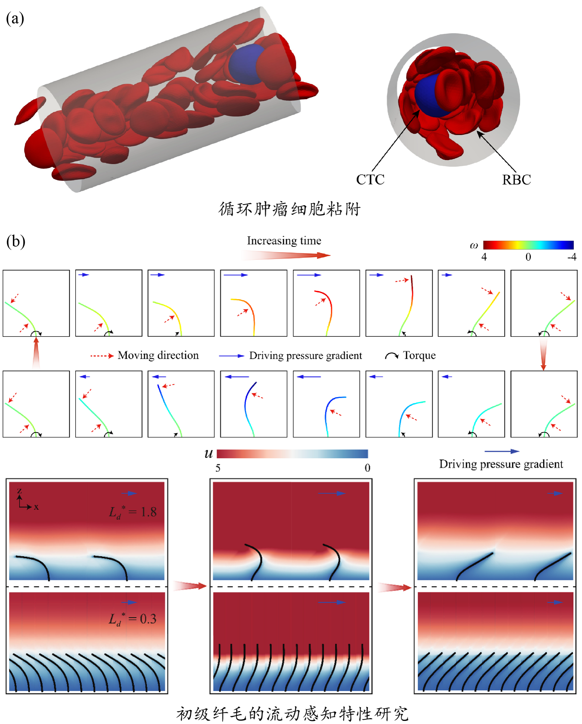主要研究动物和人体内循环、呼吸系统的生理流体(如血液、气体、尿液、淋巴液和其他体液等)的流体力学问题,比如初级纤毛(一种哺乳动物的细胞器)的流动感知特性,循环肿瘤细胞在微血管中的迁移和粘附机制,相关研究对我们理解肿瘤血行转移过程具有重要意义。