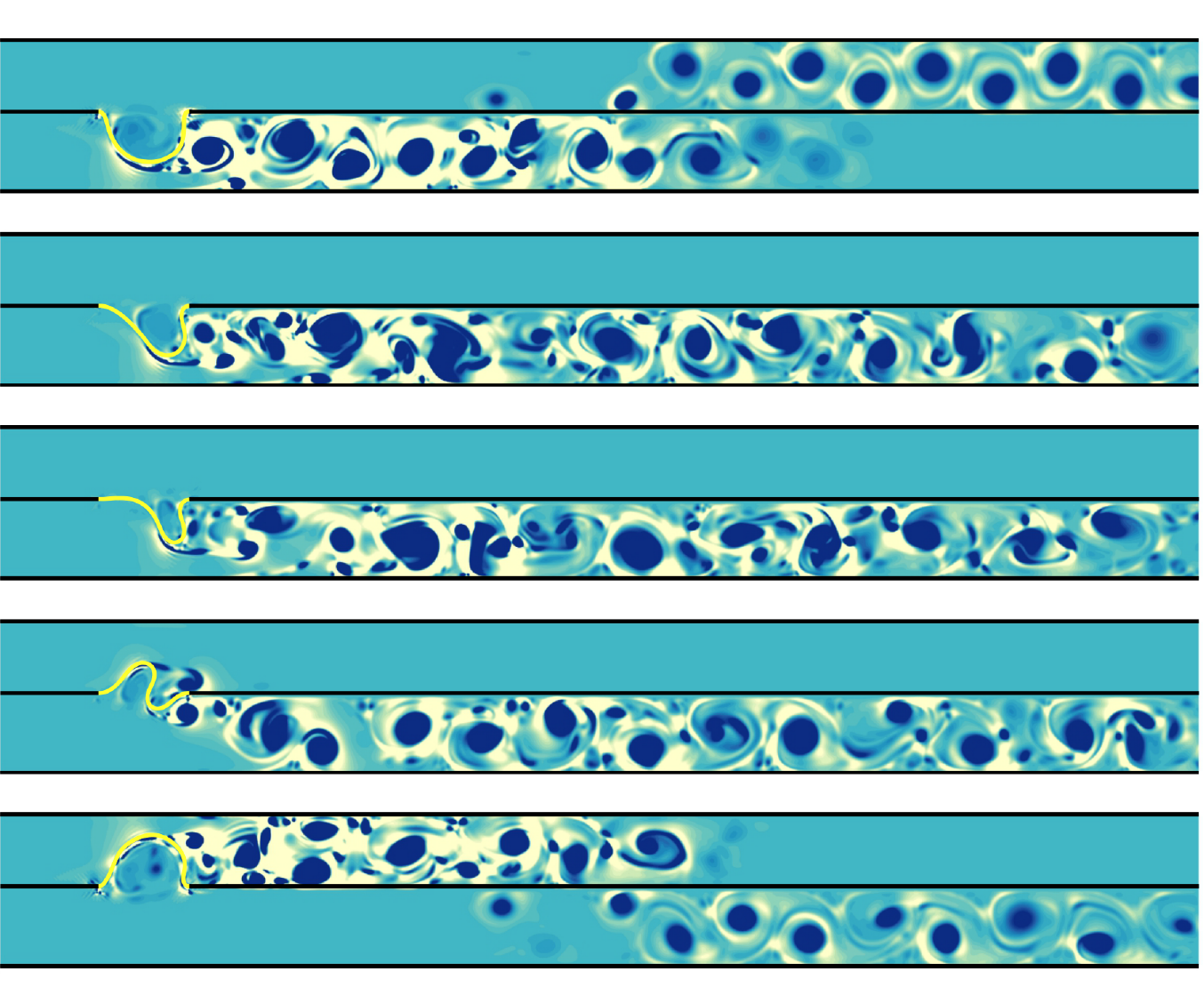 1. Cui, J.,et al., Buckled elastic sheet as a vortex generator in dual channels,Journal of Fluid Mechanics, 985: A39.