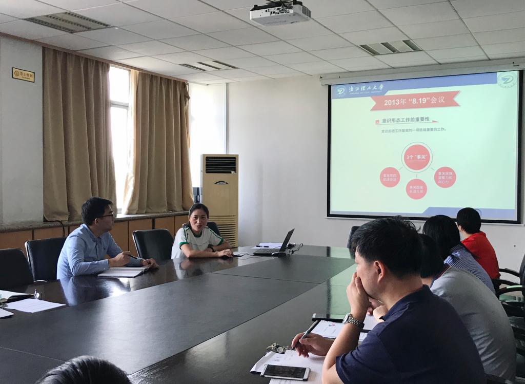 党委理论学习中心组学习会在学院会议室召开。参加此次学习会的有学院党委书记潘海鹏、副书记苏丽辉、副院长俞高红、副院长胡明、党委委员吴震宇、各系、中心、办公室主任、教工党支部书记等。会议由潘海鹏主持。