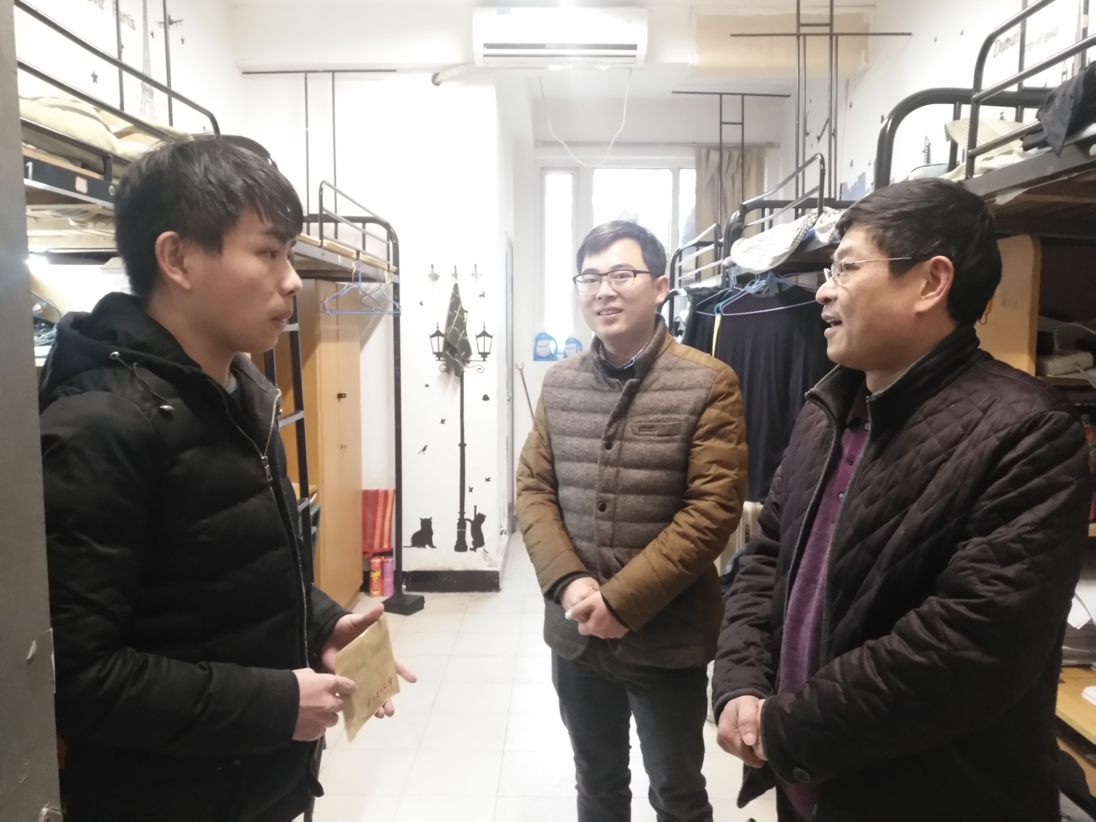 走访前,学院开展了生活困难党员的调查摸底工作,以“解决实际难题,精神与物质相结合”为导向,筹划了此次走访慰问活动。走访慰问中,潘海鹏主要关心了解每位同志的思想、学习与生活情况,倾听他们的意见与愿望,并为生活困难党员送去慰问金,还特别提醒寒假留校党员注意安全。通过慰问,了解到,学院困难学生党员平时勤俭节约、自强自立、乐观上进、勤奋好学,并能尽自己所能主动帮助其他同学,留校学生党员主要是为了继续开展课题研究、参加相关科研竞赛以及毕业设计与就业等。