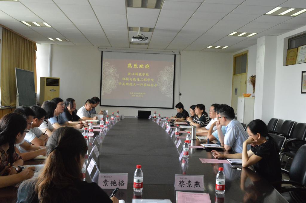 6月20日上午,浙江科技学院机械与能源工程学院李其朋院长一行来av动漫 调研。会议在15-322会议室举行。av动漫 院长陈本永、副院长俞高红、副院长胡明以及相关专业系主任参加会议。