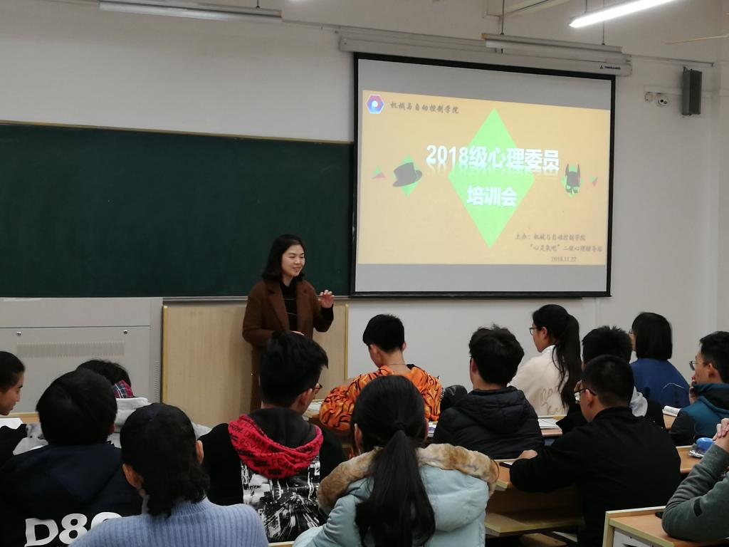 、材料与纺织学院、丝绸学院及外国语学院联合举办的2018级心理委员第三次培训会在2S131召开。本期培训由机控学院情商成长中心承办。出席本次活动的有机控学院心理健康教育指导老师叶小卉,机控学院情商成长中心的学生负责人以及机控、材纺、外国语学院全体2018级心理委员等。