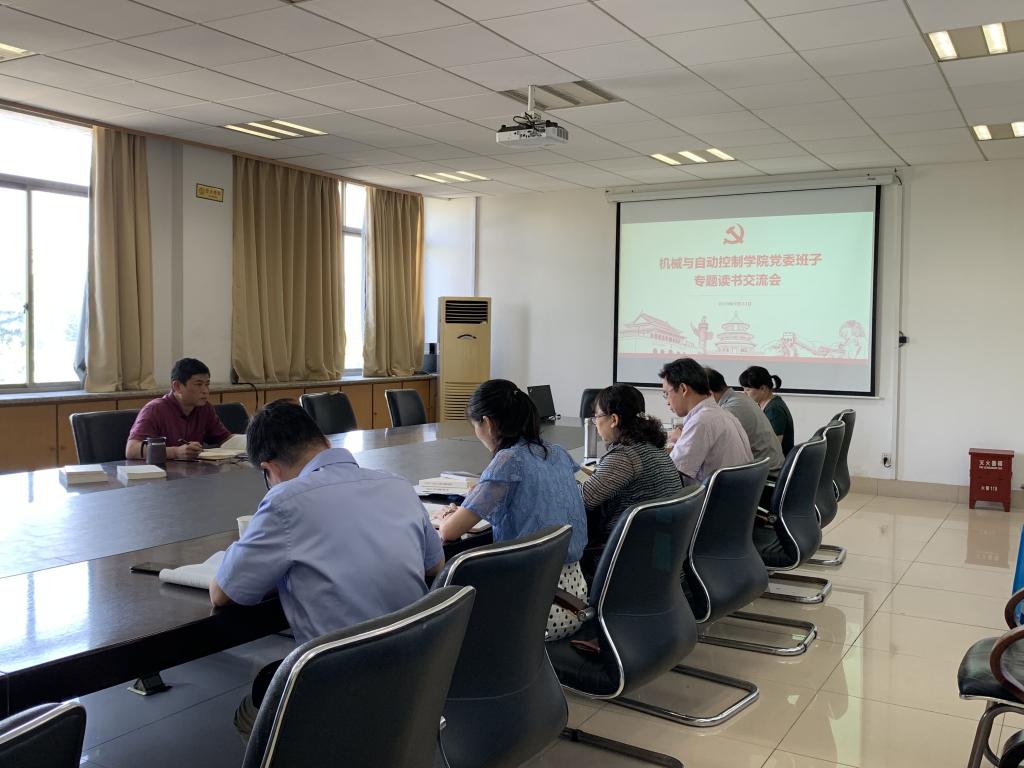 党委班子成员在15-322会议室召开主题教育专题读书交流会。学院党委书记潘海鹏、院长陈本永,党委副书记苏丽辉、副院长俞高红、胡明、鲁玉军,党委委员吴震宇等参加会议。