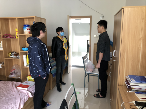 4月7日,学院党委副书记王吴芳、学工办主任丁宁及辅导员一行走访慰问了留校本科生刘小群。关心慰问之余,王吴芳叮嘱刘小群留校期间要做到努力学习和日常锻炼相结合,要和家人及辅导员保持交流联系,生活中有困难要及时向辅导员反馈,并对刘小群寒假期间主动帮助同学代拿物品的行为表示了肯定,鼓励其继续发扬志愿精神,在做好防疫保障的前提下为有需要的同学提供尽可能的帮助。