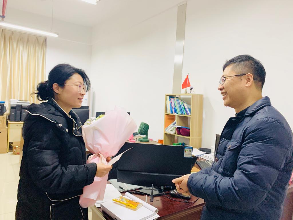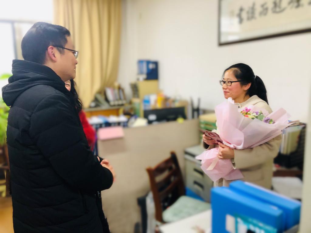 爱心播撒希望,奉献点亮芳华。在第111个“三·八”国际妇女节到来之日,av动漫 党政领导、工会主席走访慰问了学院全体女教职工,感谢她们用心用爱为教育事业和学院发展奉献芳华,并送上鲜花和祝福。慰问中,领导们特别关心了解新进女教职工和青年女教师的发展近况,鼓励她们敢梦敢拼,用人格魅力教育影响学生,做学生筑梦路上的新时代“女神”。