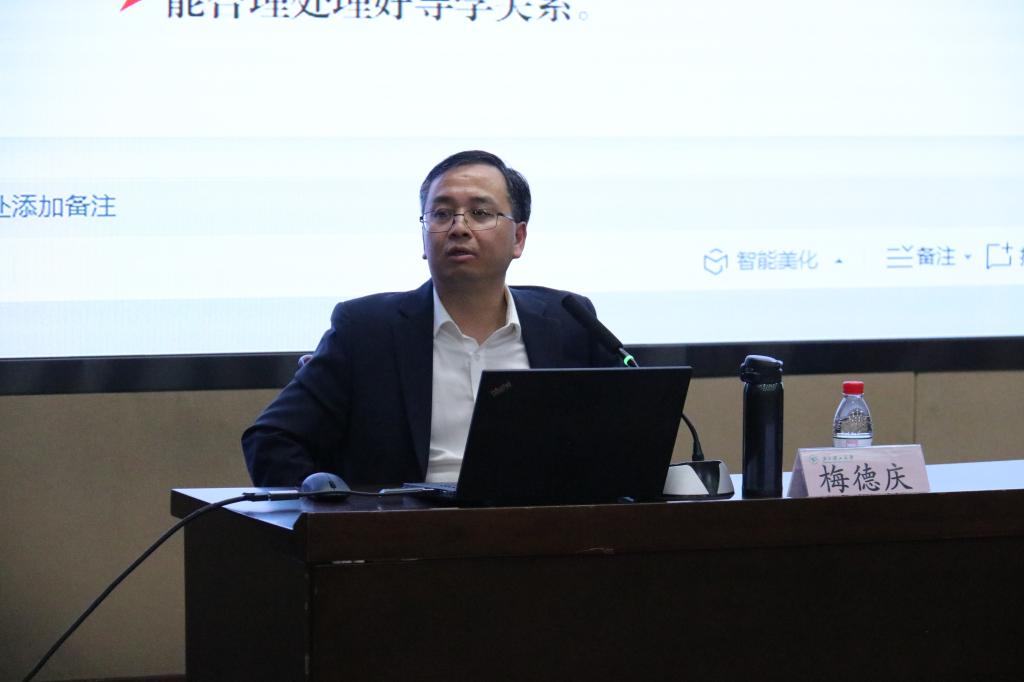 学风建设月之“知新大讲堂”在行政楼二楼报告厅举办。浙江大学海洋学院常务副院长、党委副书记、博士生导师梅德庆教授应邀担任本次主讲人,为现场200余名师生带来了一场题为《勇于创新 精益求精 追求卓越——浅谈如何成为一名卓越研究生》的专题报告。学院副院长鲁玉军、党委副书记陆秋萍参加。
