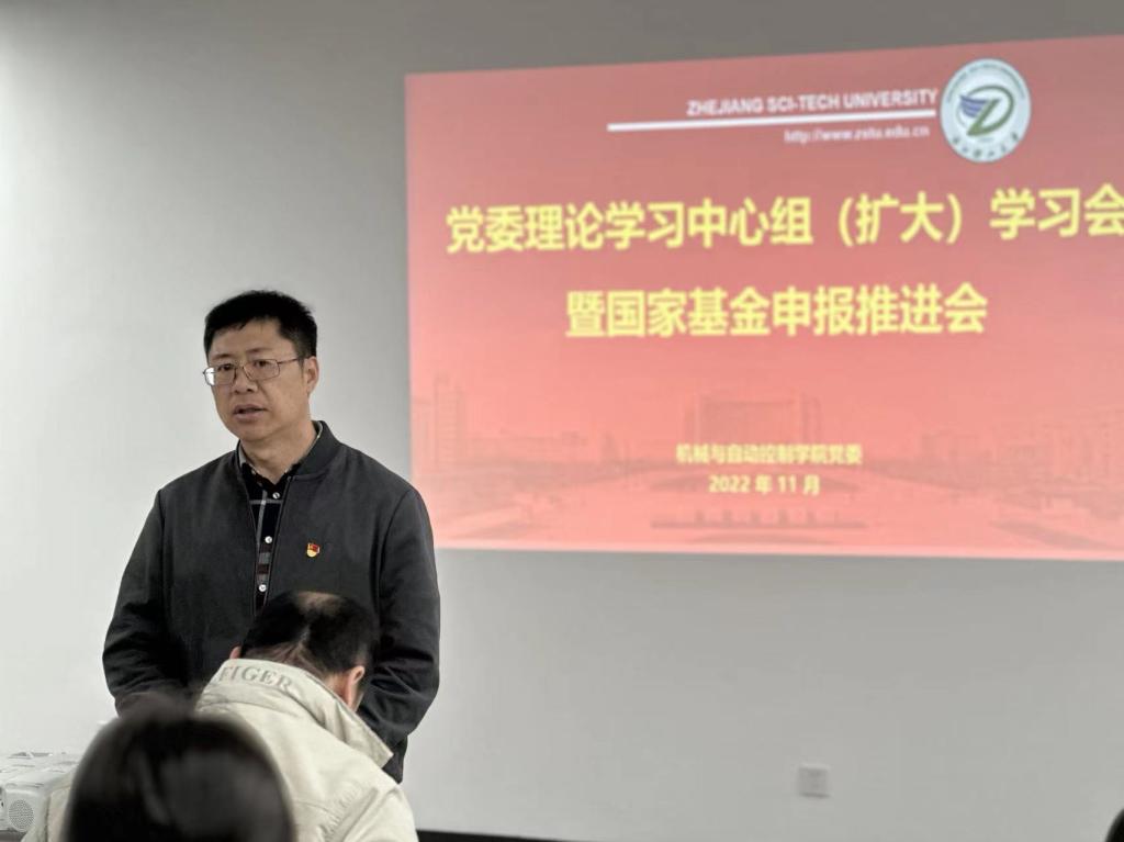 11月16日,学院党委召开理论学习中心组(扩大)学习会暨国家基金申报推进会。学院党政领导班子成员、师生党支部书记、青年教师代表等40余人参加会议,会议由党委书记苏志俭主持。