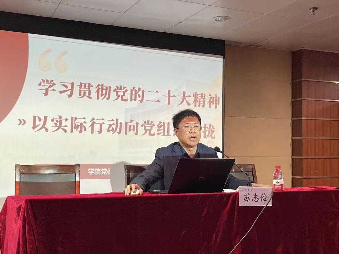苏志俭为青年党员同志们讲授题为《学习贯彻党的二十大精神 以实际行动向党组织靠拢》的主题党课。苏志俭从对马克思主义的信仰是共产党人的信念追求出发,详细阐述马克思主义理论的科学性,并生动讲述了中国共产党在推进马克思主义中国化进程中实现的两次历史性飞跃。苏志俭强调,教育、科技、人才是高校办学的职责使命,详细解读了二十大报告中关于深入实施科教兴国战略、人才强国战略、创新驱动发展战略的相关内容,同时向学生党员介绍了学院的办学现状及22年以来取得的标志性成果。最后,苏志俭结合习近平总书记对青年的寄语提出,希望机械党员们能够立足专业特长,发挥自身优势,结合实际需求,志存高远、脚踏实地,成为有理想、敢担当、能吃苦、肯奋斗的新时代好青年。青年党员们在课后交流讨论,纷纷表示获益匪浅。