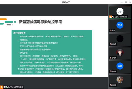 学生工作办公室制定《关于开展“科学防疫 平安返校”主题班会的通知》,下发并认真学习《针对新型冠状病毒感染的防护操作指南》。要求各班班级干部在学懂悟透的基础上,在班会过程中从个人常态化健康监测到感染者居家防疫的正确操作指南进行清晰与明确的讲解。在此基础上,还有班级通过观看科普视频对科学防护有了更深的理解和认识。主题班会上,同学们全面学习解读《av动漫