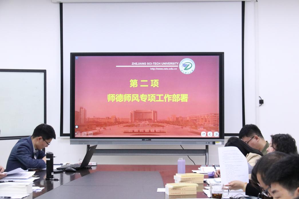 会议还就深入开展师德师风问题整治工作进行了专题部署,苏志俭传达了全省师德师风整治工作电视电话会议精神和学校的工作部署,解读了学院师德师风问题整治工作方案,要求全院各党支部、系(中心)、办公室根据要求全方面开展自查自纠,切实将师德师风问题整治落实到实处。