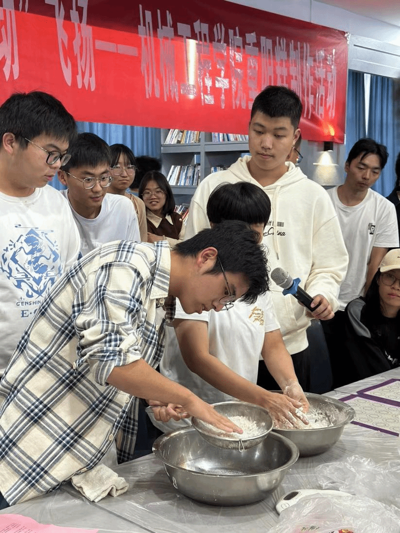 揭牌仪式后,恰逢重阳节到来之际,为帮助同学们了解中国传统节日,劳动教育实践基地第一期活动“金秋‘劳’作事,青春‘动’飞扬—重阳糕制作体验活动”正式拉开帷幕。面点师傅关丽芳为同学们讲解重阳糕的来历以及制作方法,同学们纷纷上手体验制作,现场氛围火热。在同学们的期待下,一笼笼飘香四溢的重阳糕出锅了,吃着自己亲手制作的重阳糕,每个人的脸上都展现出喜悦。