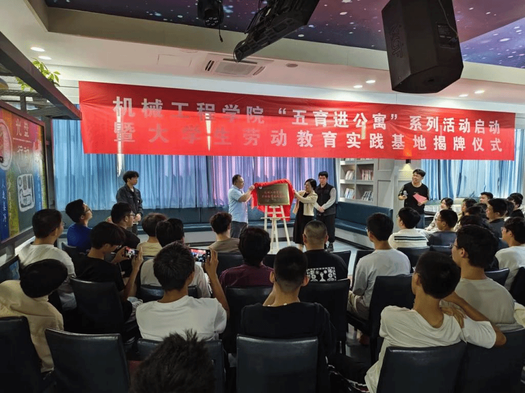 “五育进公寓”系列活动暨大学生劳动教育实践基地揭牌仪式于紫薇阁三楼举行。学院党委副书记陆秋萍、紫薇阁三楼餐厅经理郭敏,糕点师关丽芳、研究生公寓辅导员程宇龙以及2023级全体寝室长出席仪式。仪式由23级本科生公寓辅导员李家乐主持。