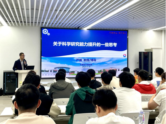 开营仪式结束后,严博作《关于科学研究能力提升的一些思考》专题培训,从最贴近研究生科研实际的七个核心问题出发,围绕论文撰写、文献检索、前沿动态把握、科学问题提出、实验设计、结果分析、创新点挖掘等方面,结合丰富的例证对研究生学术能力发展作了详细的阐述,分享了具体的方法和技巧。同时,他结合自身科研经历从培养兴趣、形成习惯、专业热爱进行了讲解,希望同学们研读专业文献,打牢专业基础,做好科研规划,努力提高学术研究水平。并建议同学们要善于自我施压,不要安于现状,力争在培养兴趣的同时,挖掘自己的学术能力,以期获得更高学术造诣,不断把兴趣提升到专业自觉,现场气氛活跃。