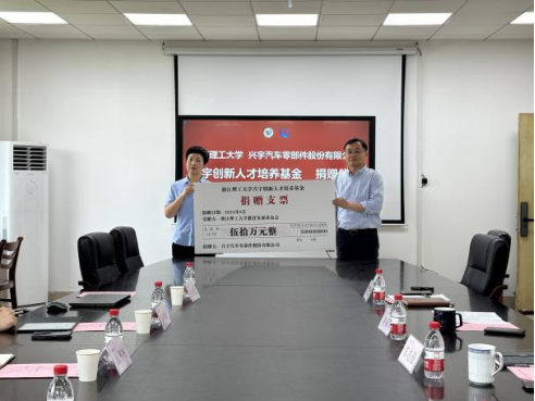 “兴宇创新人才培养基金”捐赠仪式在15号楼322会议室举行。兴宇汽车零部件股份有限公司(以下简称“兴宇股份”)副总经理张阿巧、副总经理兼企业研究院院长冯新建、项目部部长赵建飞、项目部高级专员应佳宏,av动漫