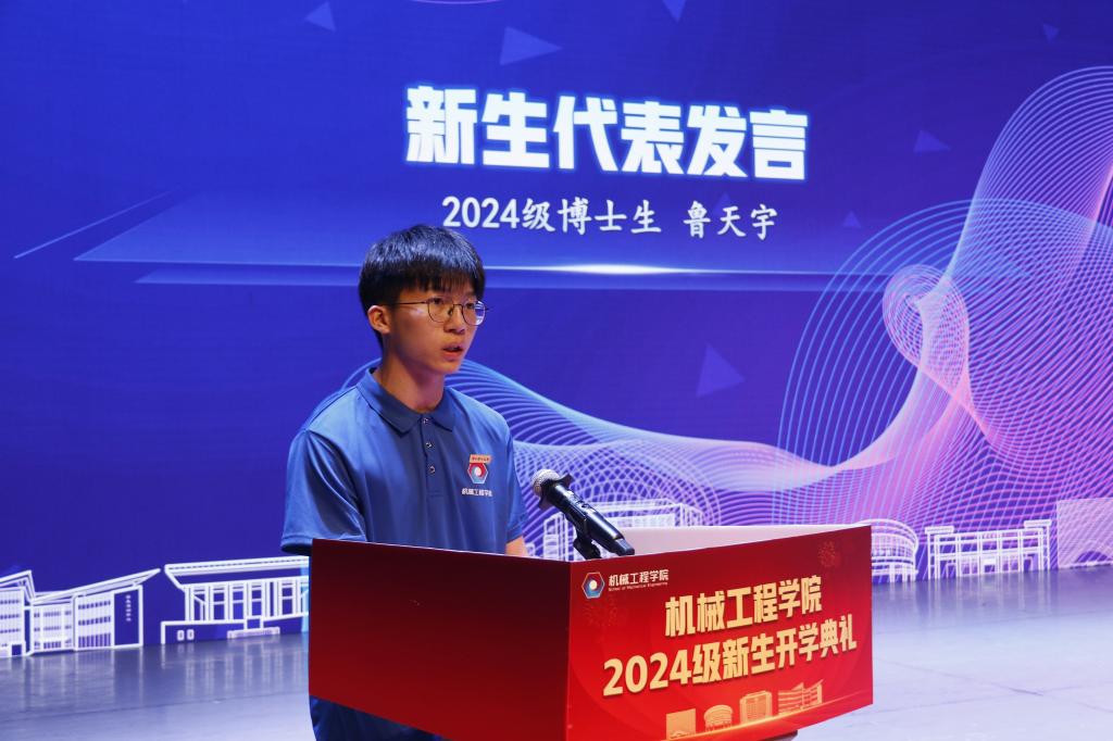 2024级博士生鲁天宇作为新生代表发言,他以自身在浙理求学的6年为例,分享了求学路上的不易与挑战,并号召同学们在未来的大学生活中做到以下三点:在面临学术选择时要志存高远,勇攀高峰,擦亮科研探索的初心;在面对困难挑战时要无所畏惧,坚定不移,砥砺拼搏进取的恒心;在坚定人生志向时要心怀大我,至诚报国,厚植追求卓越的匠心。