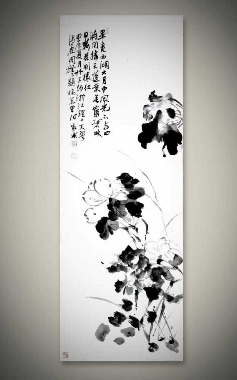 创作心路:作品灵感来源于北宋周敦颐《爱莲说》,通过荷花来表达作者对纯洁高尚品德的敬仰和追求。作品风格取自徐渭画风,构图简洁洗练,用笔轻松灵活。
