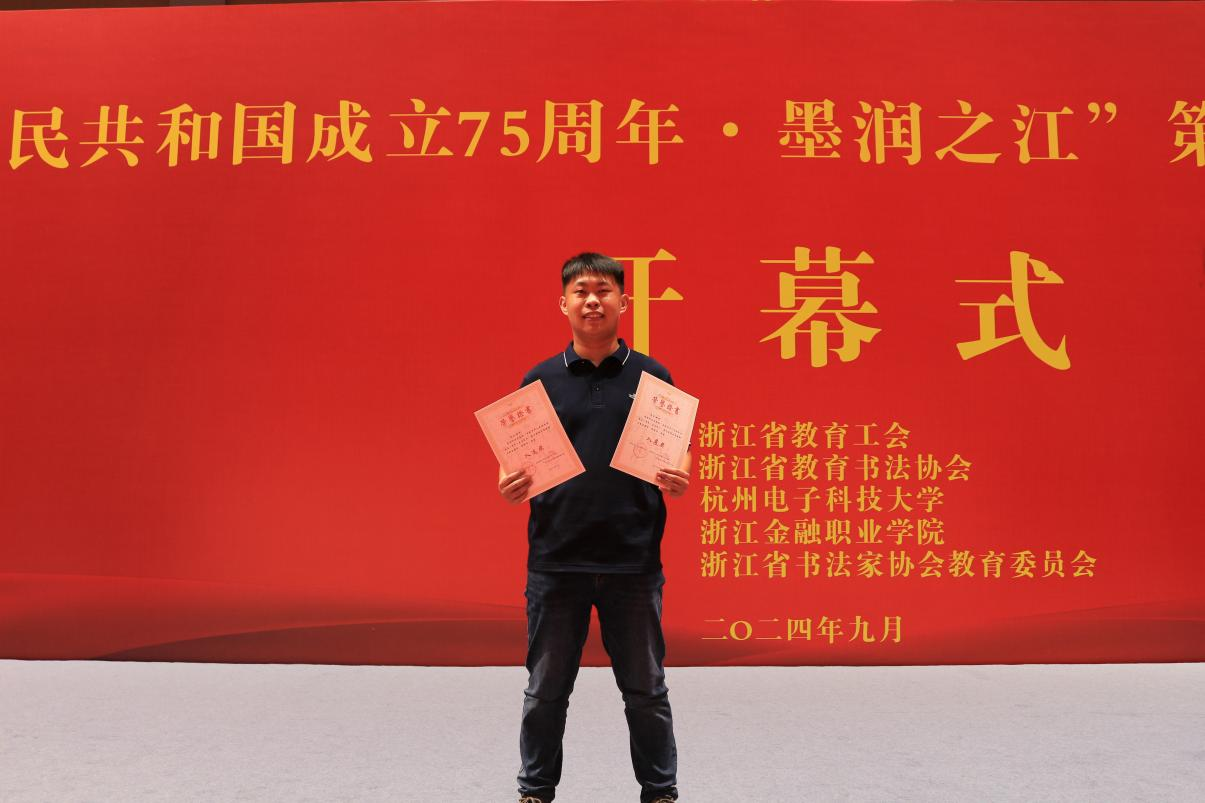 辅导员李家乐的书法作品《已亥杂诗》获入展奖、国画作品《墨荷图》获入选奖。