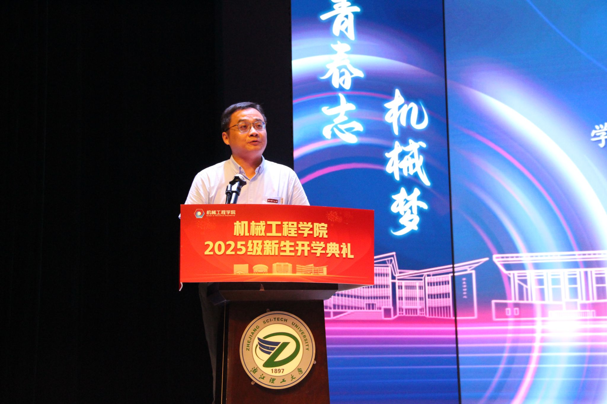 2025级新生开学典礼在下沙校区国际会展中心(大剧院)隆重举行。学院党委书记苏志俭,院长李秦川,米奥会展创始人及CEO、学院95级机制专业校友方欢胜,米奥会展人力资源总监王慧君,全国优秀教师、学院新昌技术研究院院长胡旭东,学院副院长潘骏、向忠、严博,学术副院长童俊华、王骏骋、各系(中心)主任、三办主任、新生班主任、辅导员与全体1003位2025级新生齐聚一堂,共同开启新生们“承机械报国志·做时代追梦人”的崭新篇章。典礼由学院党委副书记、纪委书记陆秋萍主持。