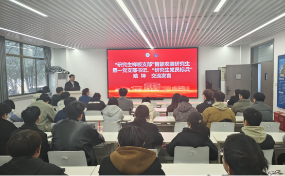 随后,第四批全省高校党建工作“研究生样板支部”智能农装研究生第一党支部书记、“研究生党员标兵”姚坤进行了交流发言。姚坤从创新组织生活形式、强化党员教育管理、特色志愿活动品牌创建、推动党建与科研融合发展等多个维度分享了支部的经验和做法各支部开拓思路、创新发展提供了宝贵的借鉴