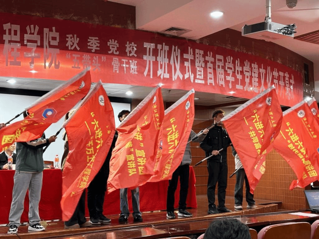为进一步提高学生党员的综合素质,充分发挥新时代大学生党员的先锋模范和骨干带头作用,学院举办“青春心向党,奋进新征程”首届学生党建文化节,围绕强基固本-筑牢“红色堡垒”、守根铸魂-固紧“红色根基”、接续传承-点燃“红色引擎”、笃行致远-再创“红色传奇”四个篇章开展系列学生党建活动。同时,学院实施学生党员“五个带头”作用发挥承诺机制,成立“五带头骨干班”和“六进六讲”宣讲团。学校组织部(统战部)干部张维标老师为宣讲团代表授旗。