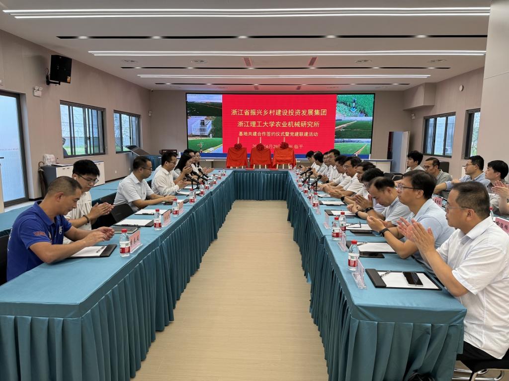 农业机械团队党支部与浙江省振兴乡村建设投资发展集团党委签订党建联建协议。双方党员代表就如何在合作中充分发挥党组织的战斗堡垒作用和党员的先锋模范作用展开了深入且全面的探讨。