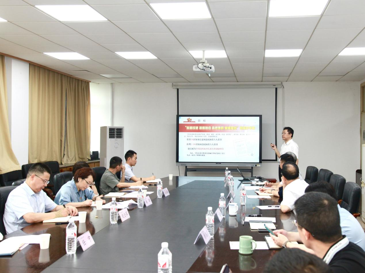 6月28日,校党委书记赵全军在校党委副书记姚珺,校党委委员、党委组织部(党委统战部)部长任宁、党委办公室主任陈善晓的陪同下来到学院开展基层党建工作调研,学院党委书记苏志俭,党委副书记陆秋萍,党委委员鲁玉军、向忠,教工党支部书记代表胡旭东、童俊华、彭来湖及党员师生代表一同参加调研座谈。